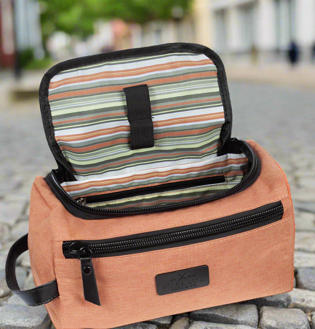 Revamped with you in mind! Introducing our new, sophisticated metal logo for an all-around sleeker look. Inside, discover two spacious loops on the top flap, perfect for holding large auto-injectors or our stealth shuttle – and versatile for personal items like a toothbrush holder. We've also incorporated two handy mesh pockets on either side of the interior for enhanced organization within the Dopp. Lastly, explore our four small loops on the front interior, designed to secure all your vials, ranging from 1ml to 10ml or you may use this for options items such as makeup and or lip balm.