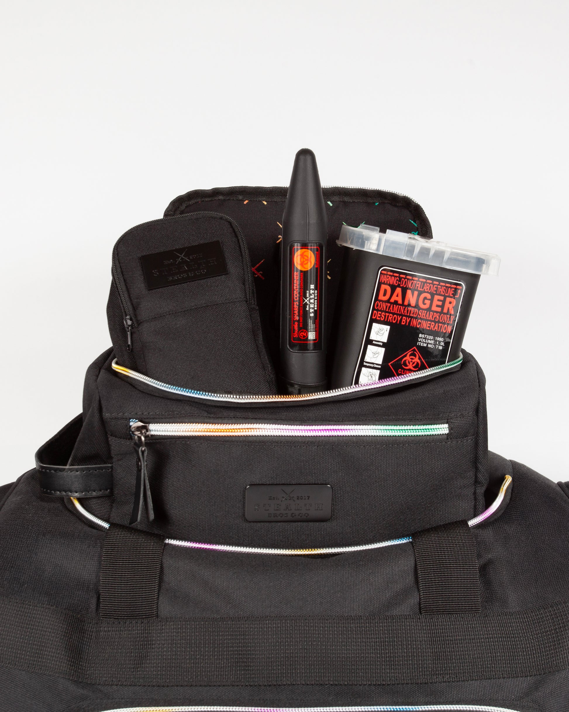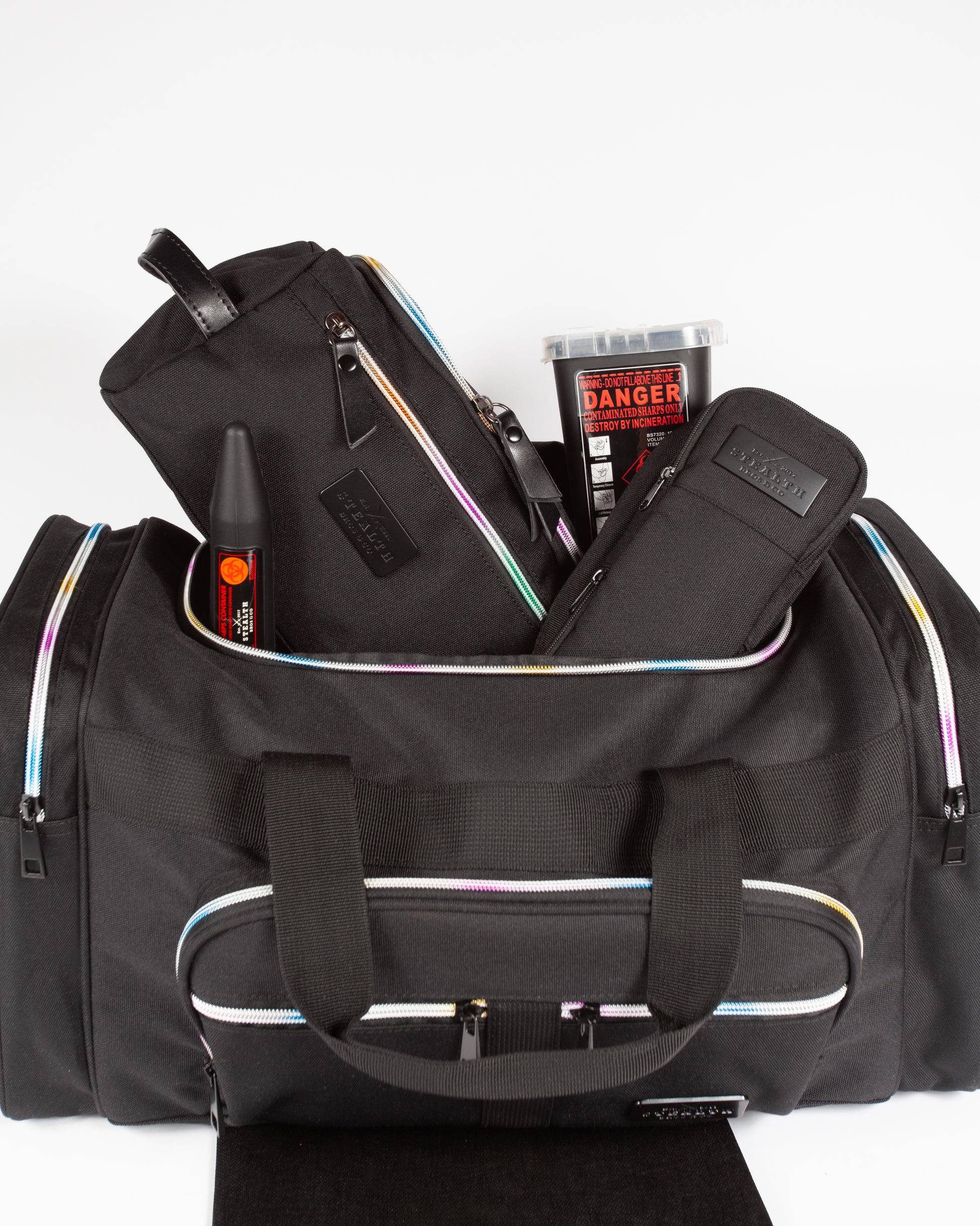 Introducing the Pride Duffle Bag Bundle โ your ultimate travel companion that celebrates pride, functionality, and convenience. This exclusive bundle includes the spacious Pride Duffle, the versatile Original Dopp, and the compact Jr Dopp + Stealth Container & Shuttle --ensuring you're prepared for any journey, big or small.